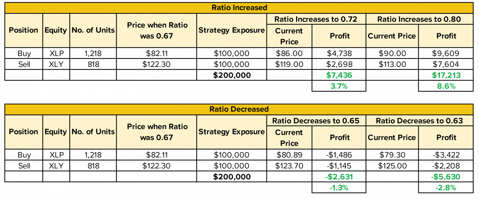 Pair Trade – Long Consumer Staples (XLP) / Short Consumer Discretionary (XLY)