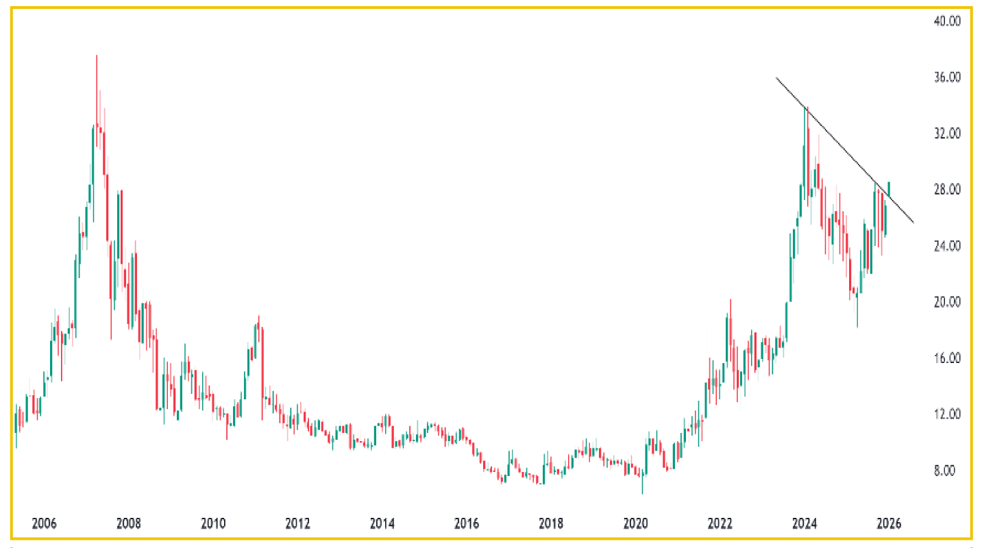 In 2025, the Uranium market is projected (as the actual numbers are yet to be released) to be in a deficit of about 3.3%, as demand and supply stand at 182 mlbs and 176 mlbs, respectively. Looking ahead, the deficit is expected to rise to a staggering 49%+.